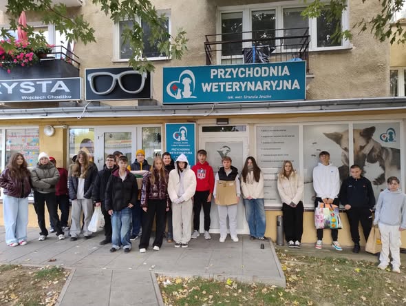 W dniu dzisiejszym zebrane od całej społeczności szkolnej mokre i suche jedzonko, koce, ręczniki i legowiska zaniesione zostały do Przychodni Weterynaryjnej Pani dr Urszuli Jeszke, przy ulicy Mogielnickiej 21, skąd będą odebrane przez Panią Elżbietę Wysocką ze wspomnianej Fundacji.