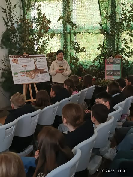 naszymi ekspertkami były panie: Renata Klaus - klasyfikator grzybów w PSSE oraz Bożena Janus - starszy asystent do spraw oświaty zdrowotnej i promocji zdrowia w Powiatowej Stacji Sanitarno-Epidemiologicznej w Grójcu. Obie panie przekazały nam wiele ciekawych informacji na temat bogatego świata grzybów