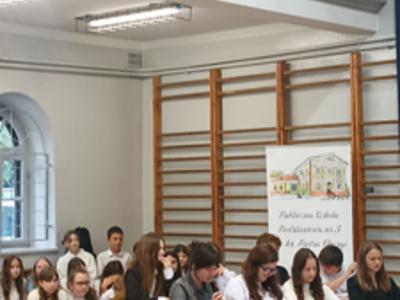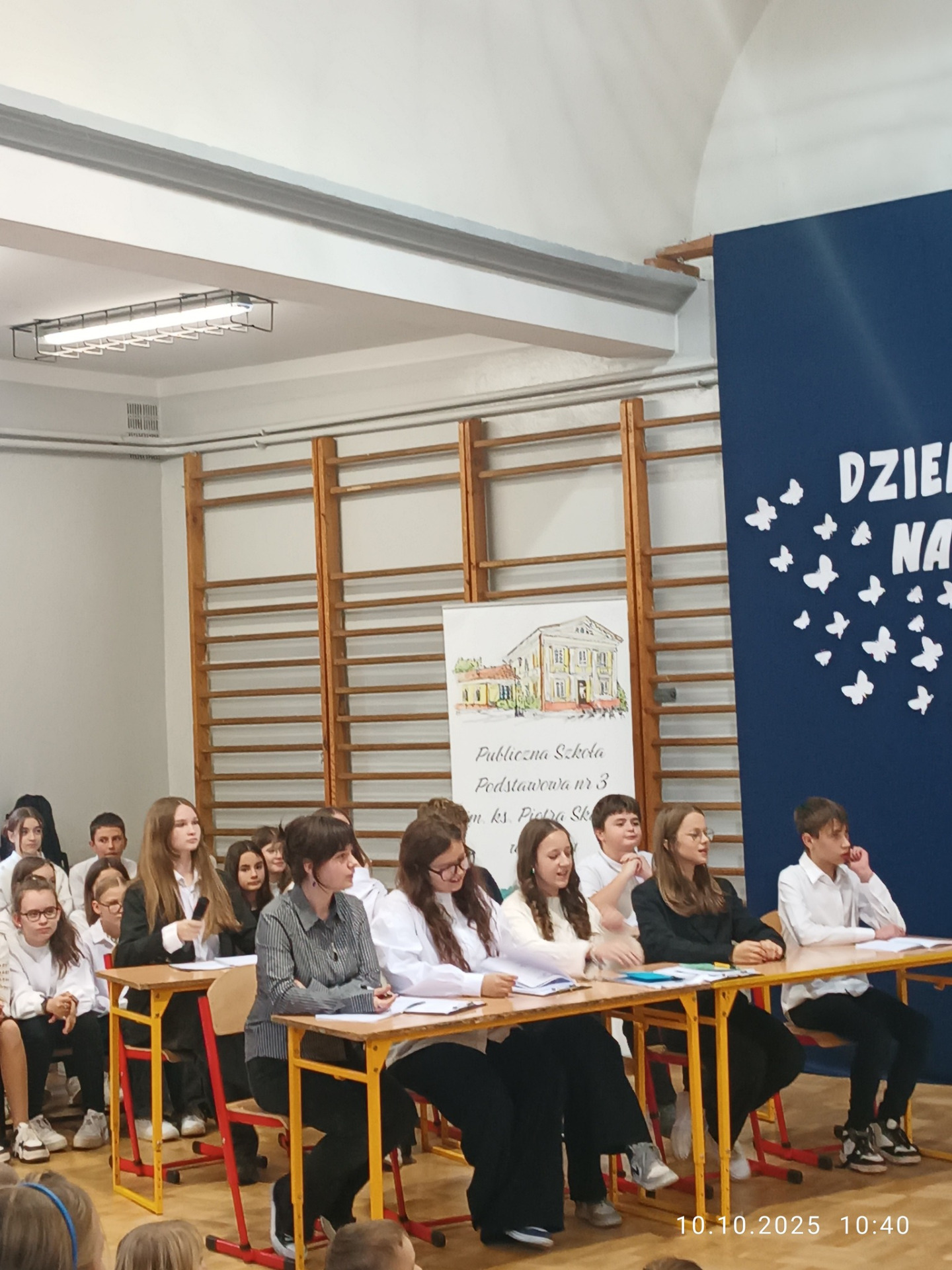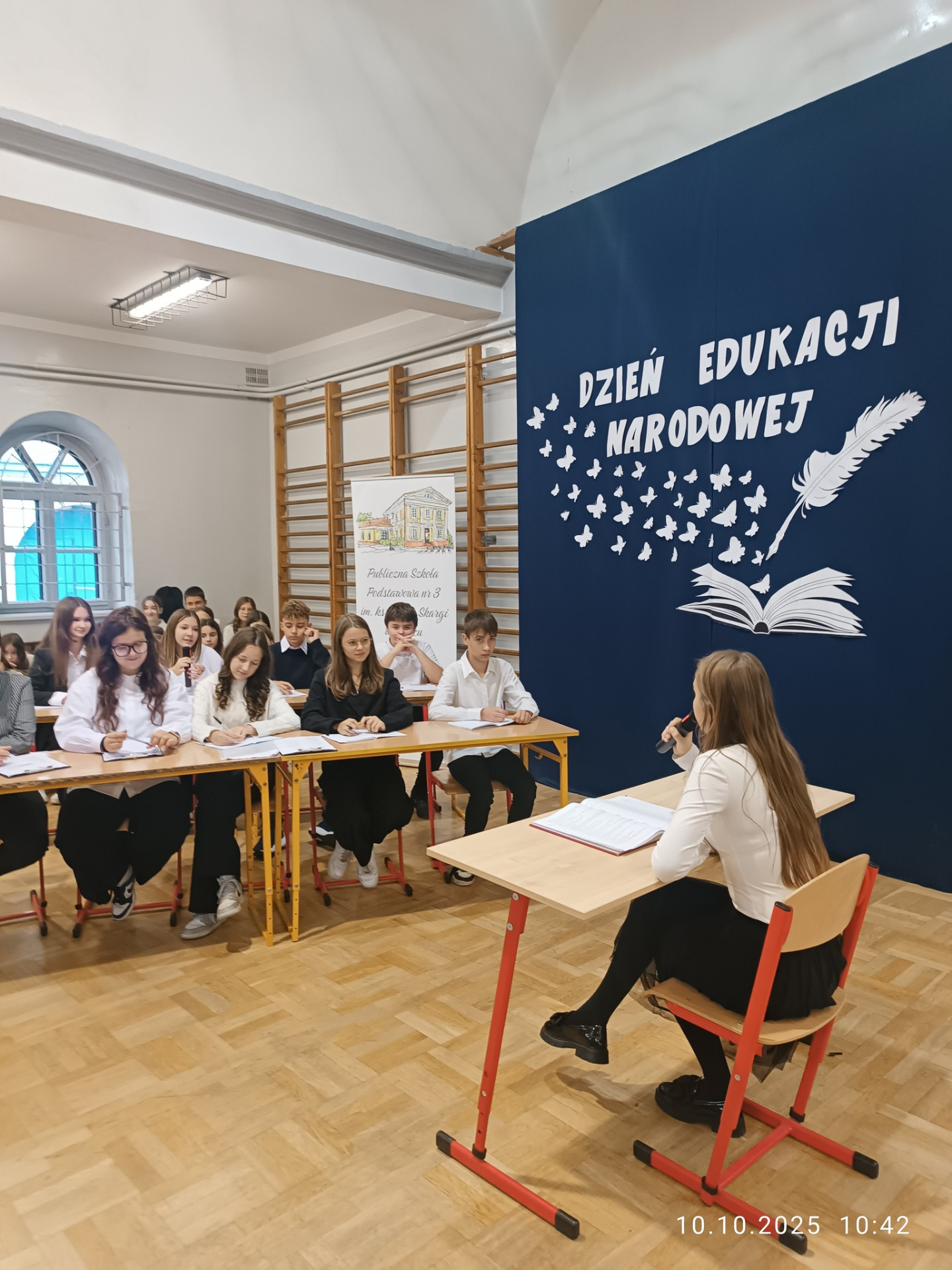 Samorząd Uczniowski, pod kierunkiem opiekunek: Katarzyny Górzyńskiej i Magdaleny Fidelus, uświetnił zbliżający się Dzień Edukacji Narodowej przygotowanym apelem. Występ, w ciekawy i żartobliwy sposób, przybliżył realia szkolnej rzeczywistości, ku uciesze oglądających