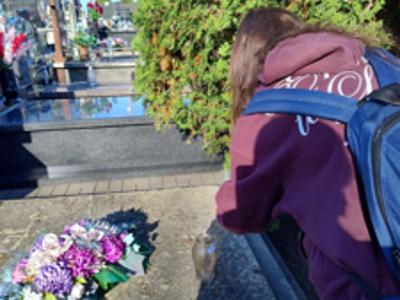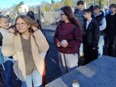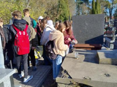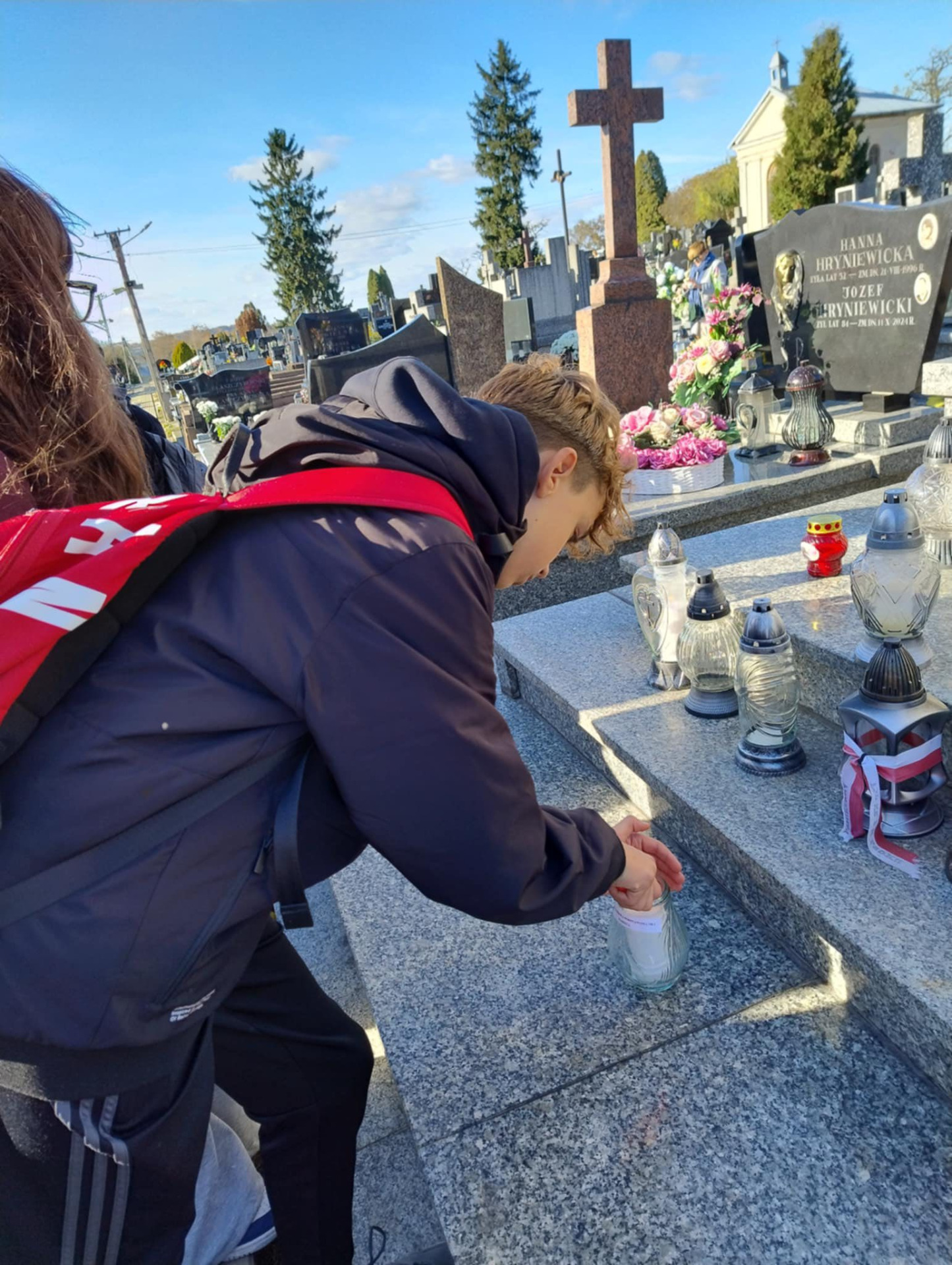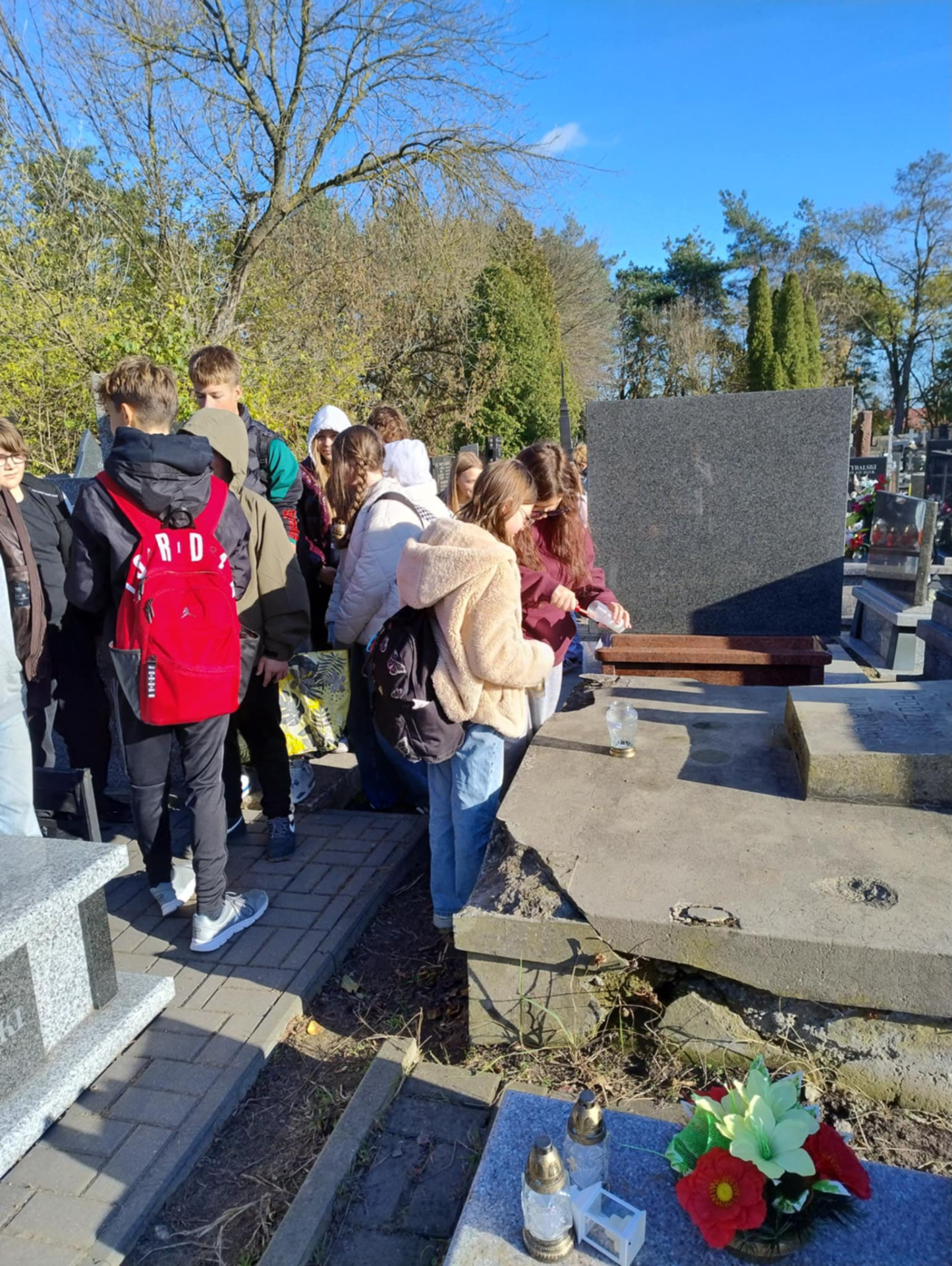 Uczniowie klas VI-VIII pod opieką nauczycieli odwiedzili cmentarz, aby zapalić na zapomnianych grobach symboliczny znicz.