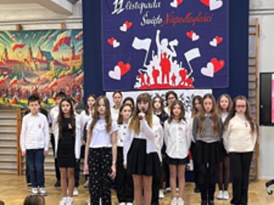 Gratulujemy uczniom i paniom wspaniałego występu i dziękujemy za piękne uczczenie tego ważnego dla wszystkich Polaków dnia.