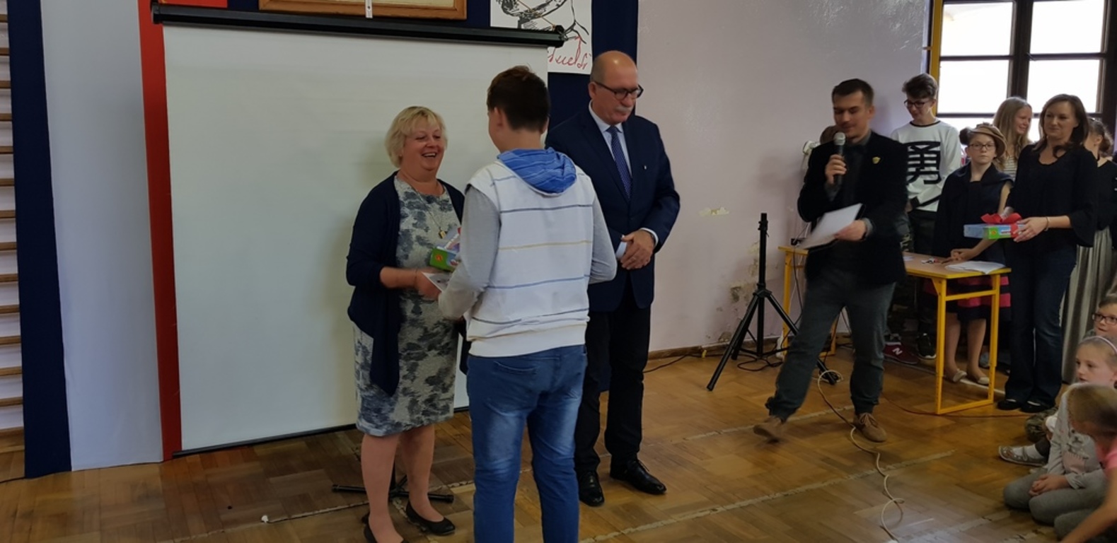 Na zakończenie uczniowie klasy ósmej zaprezentowali fragmenty projektu edukacyjnego, który przygotowali w ubiegłym roku szkolnym na lekcjach plastyki. Projekt przedstawiał zmiany zachodzące w Grójcu na przełomie stu lat. Zestawienie zdjęć prezentujących te same miejsca w Grójcu współcześnie i kilkadziesiąt lat temu spotkało się z ogromnym entuzjazmem uczniów, którzy byli zaskoczeni jak niegdyś wyglądało ich miasto. Drugą częścią projektu było pokazanie fotografii malarstwa polskiego powstałego po 1918 roku oraz fotografii prac uczniów grójeckiej trójki będących interpretacjami znanych polskich obrazów.