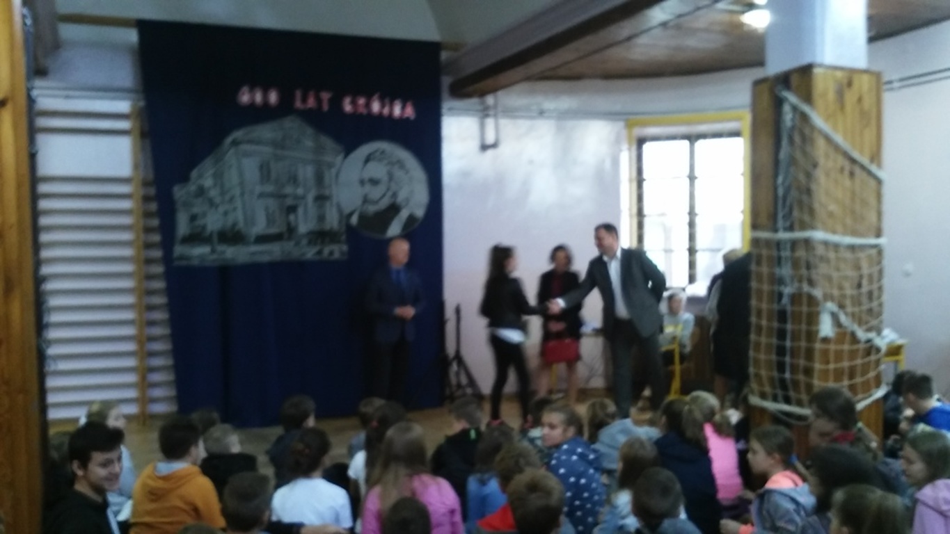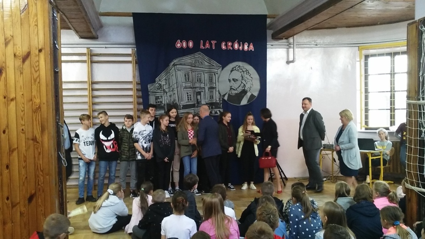 Uczestnicy sprawnie poradzili sobie z rozwiązaniem wszystkich zagadek. Między godziną 11.30 a 12.30 wszyscy udali się na poczęstunek (kiełbaska z grilla). O 13.00 nastąpiło uroczyste wręczenie nagród i pamiątkowych dyplomów w obecności Pani Dyrektor PSP nr 3 Beaty Góreckiej, Burmistrza Gminy i Miasta Grójec Pana Dariusza Gwiazdy, zastępcy burmistrza Pana Jarosława Rupiewicza, Naczelnika Wydziału Edukacji, Promocji i Spraw Społecznych Pani Moniki Kozłowsiej oraz nauczycieli szkół. Pierwsze miejsce w kategorii grupy wiekowej ucznió klas IV-VI zajęła klasa IV PSP nr 3, natomiast pierwsze miejsce w kategorii grupy wiekowej uczniów klas VII-VIII zajęli uczniowie klasy 7c PSP nr 1. Wszystkim uczestnikom gratulujemy!